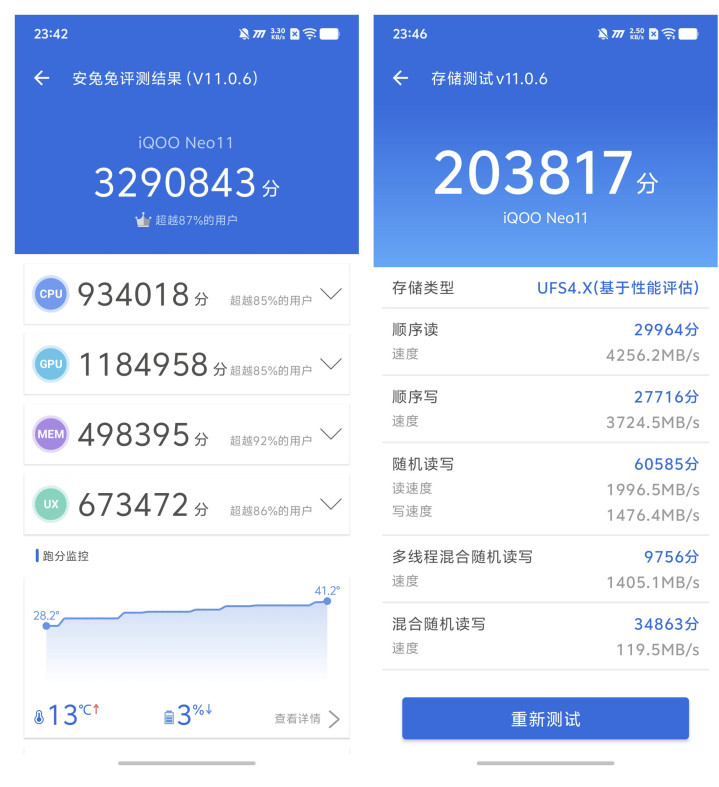 况兼在散热方面,iQOO给到了8K冰穹 VC 液冷散热系统,格外于可以在10 秒就让手机的温度降下来 15℃,亲测,在说合玩了1个小时的游戏,机身也仅仅温热,机身背部温度最高不出奇37℃,完全不会烫手。说真话,此次iQOO Neo11我认为完全即是一台同档位最强的游戏手机,相配安妥游戏党用户使用。
