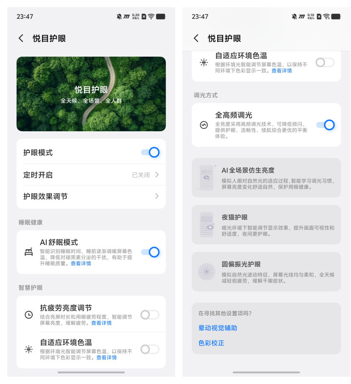 iQOO在屏幕的护眼方面,也作念的很好,主如果通过高频调光达到护眼的计算,刻下不得不承认,OLED的屏幕一经是主流,即使是好多东谈主为了护眼还在哀吊LCD屏,其完满在的OLED屏的护眼作念得也很好了。iQOO Neo11通过2592Hz 全亮度高频 PWM 调光,完满的护眼,官方界说为第二代雅瞻念护眼,SVM 低至 0.03,是行业最低频闪,永劫期看屏幕也不夺目。此外,还营救圆偏振光护眼层,可以把光辉酿成更接近当然光的圆偏光,看深远眼睛也松懈易累。