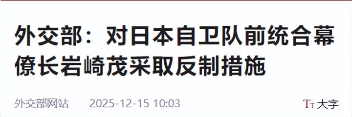 这波回转超出不少东说念主预期,而更劲爆的后续还在后头:中方与沙特的共鸣刚终了,中方就径直对日本自保队幕僚长实验制裁,组合拳打得又快又狠。