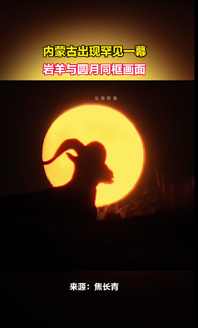 岩羊与圆月同框!内蒙古一地出现旷费一幕