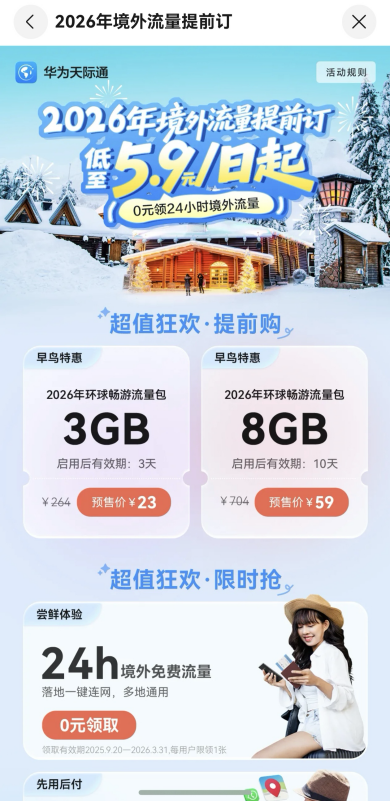 当身处境外,流量心焦成了一种新式“时差”,而天空通突破了传统国际漫游腾贵且繁琐的境况。当今天空通推出了境外流量提前购行为,3GB\8GB流量任你选,并且维持50+个国度和地区通用。另外还有免费福利别错过,从2025年12月1日起,华为手机用户登录天空通APP首页参与行为,即可享受0元领取24小时境外流量,流量券可在2026年3月31日前随时启用,号称元旦出境游的福音。无需换卡,抵达见地地即自动联网,更可共享热门,结束“一东说念主购买,全家畅连”。其“无界探访”特质,更保险了国表里主流运用的流畅使用,让应酬共享、攻略查询无缝衔接。